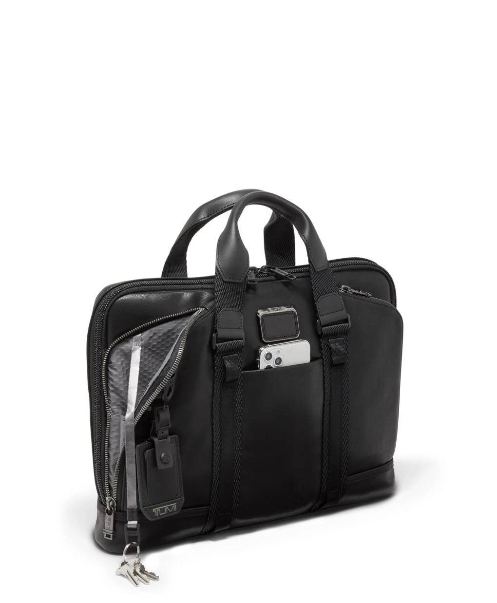 All the classics of a brief in compact silhouette. Slim and well organized, it has dedicated laptop and tablet compartments, numerous interior and exterior pockets and a removable shoulder strap.