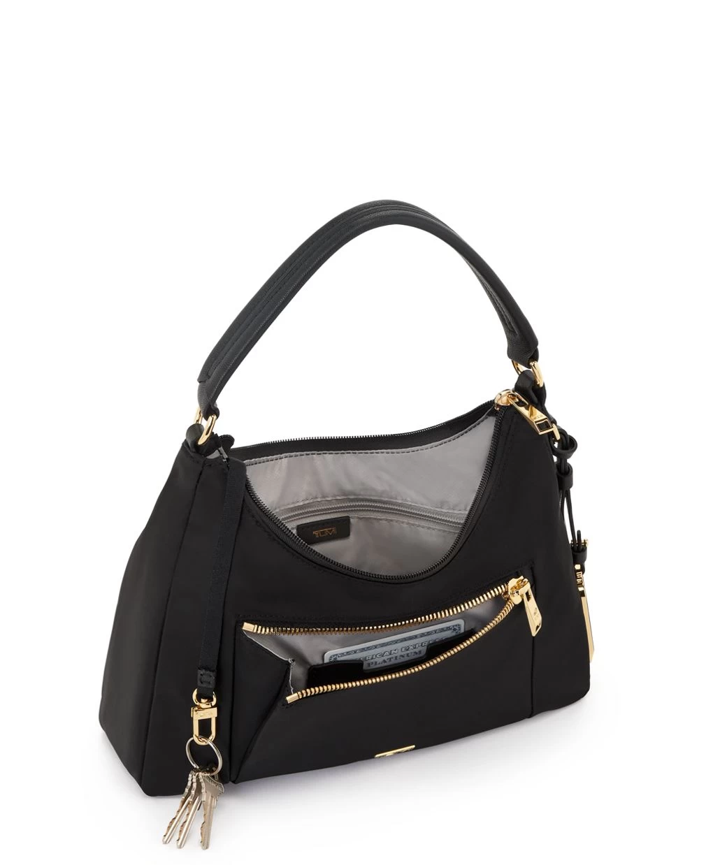A stylish silhouette that’s perfect day or night, this lightweight hobo features plenty of pockets to keep you organized while the removable strap lets you wear it as a crossbody or over the shoulder.