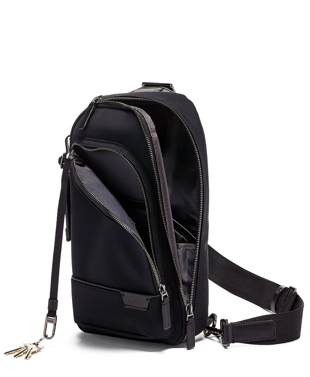 A refined take on the sling, this compact style has ample pockets to help you easily organize and access essentials. In lightweight nylon, carry what you need in style and without being weighed down.