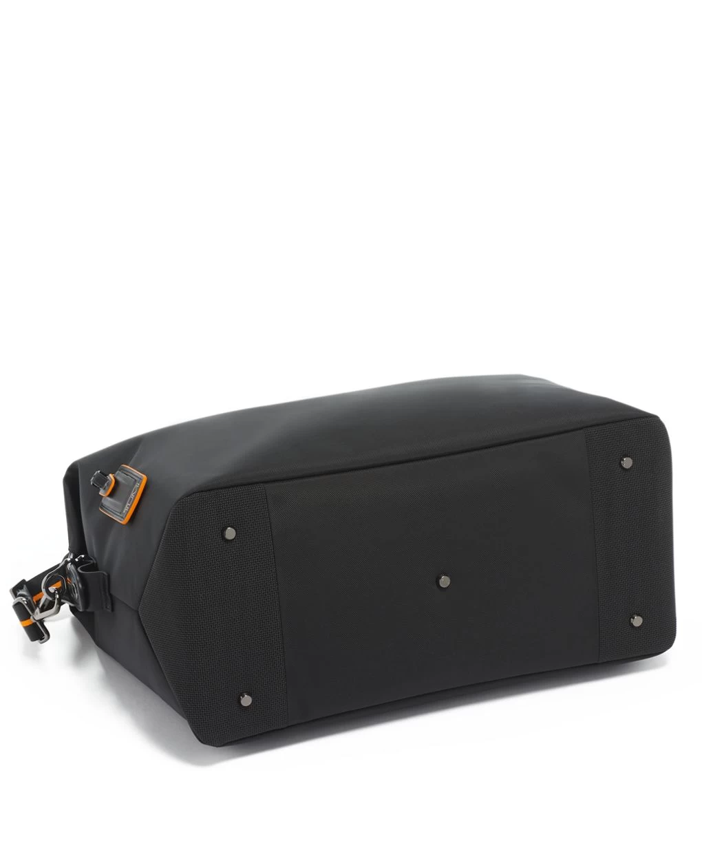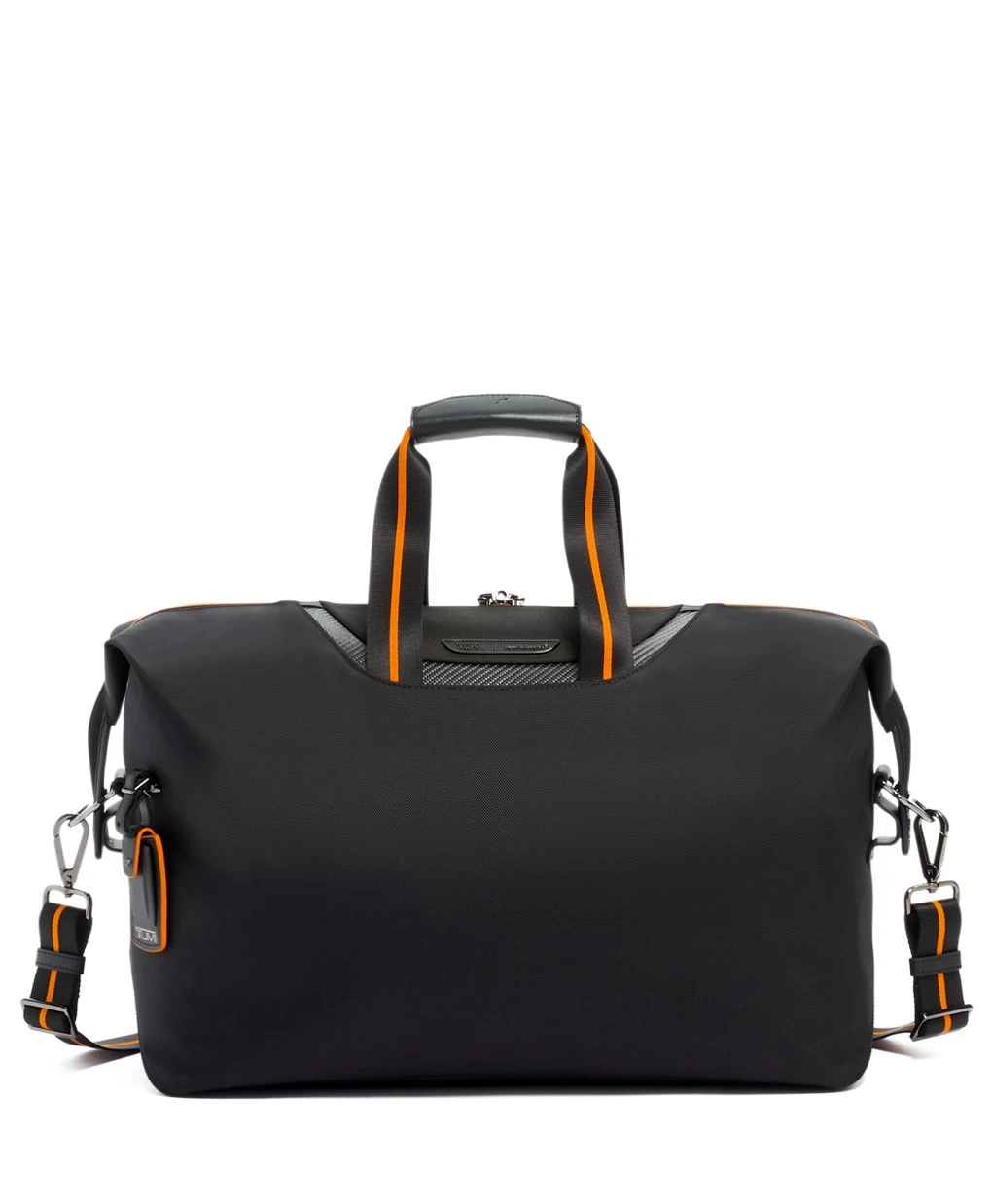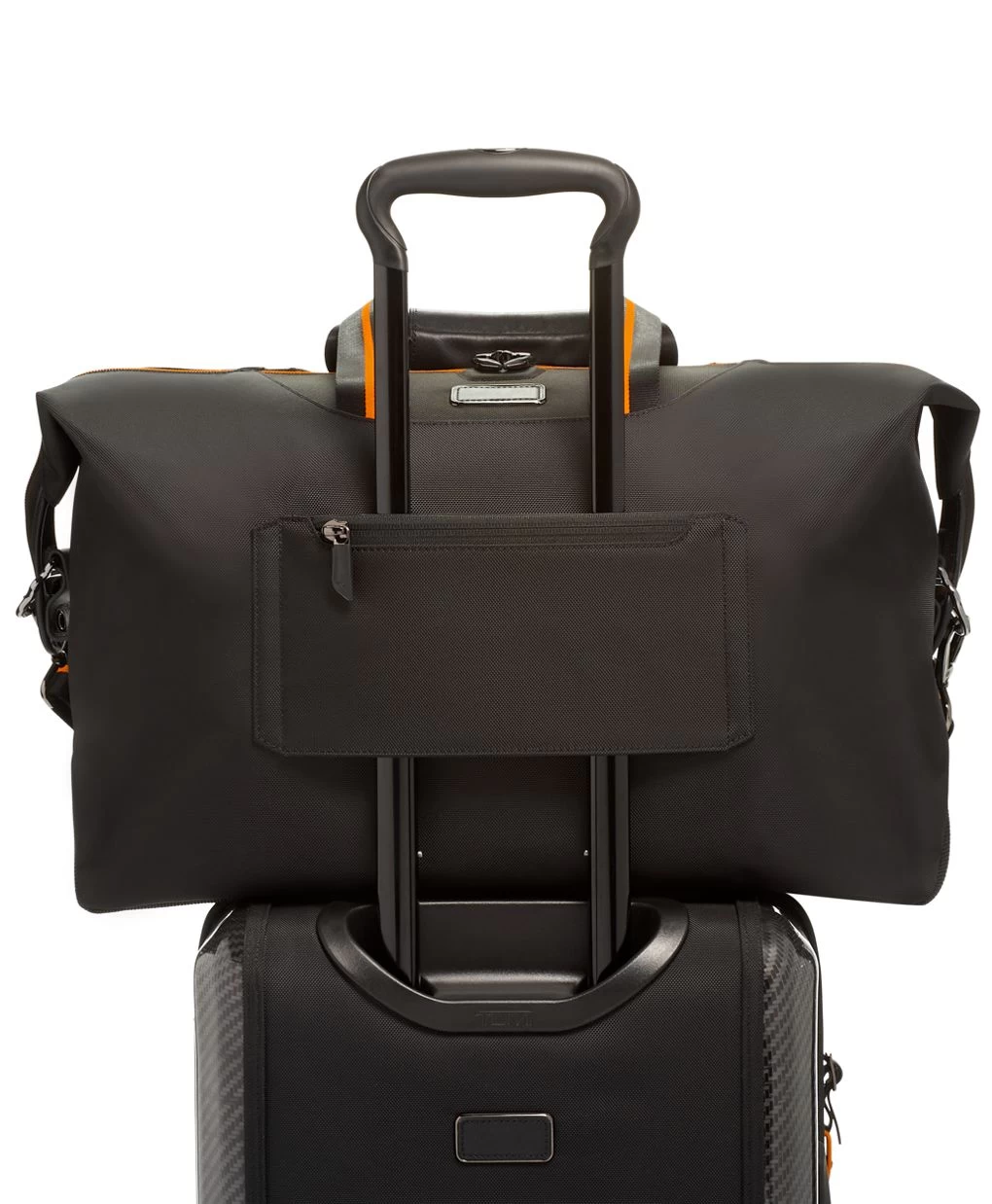 Delivering flexible packing capacity and universal appeal, this duffel is crafted with a soft-sided construction. CX6 carbon fiber and McLaren’s Papaya accents emphasize its automotive inspiration.