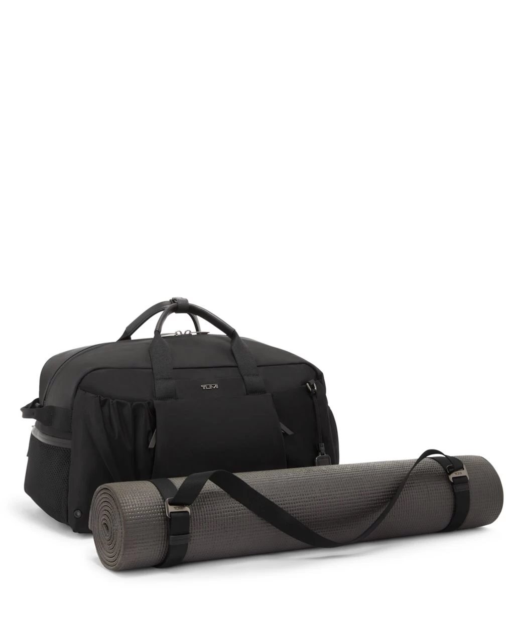 - Removable adjustable crossbody strap with G-hooks that can also be used to carry a yoga mat separately