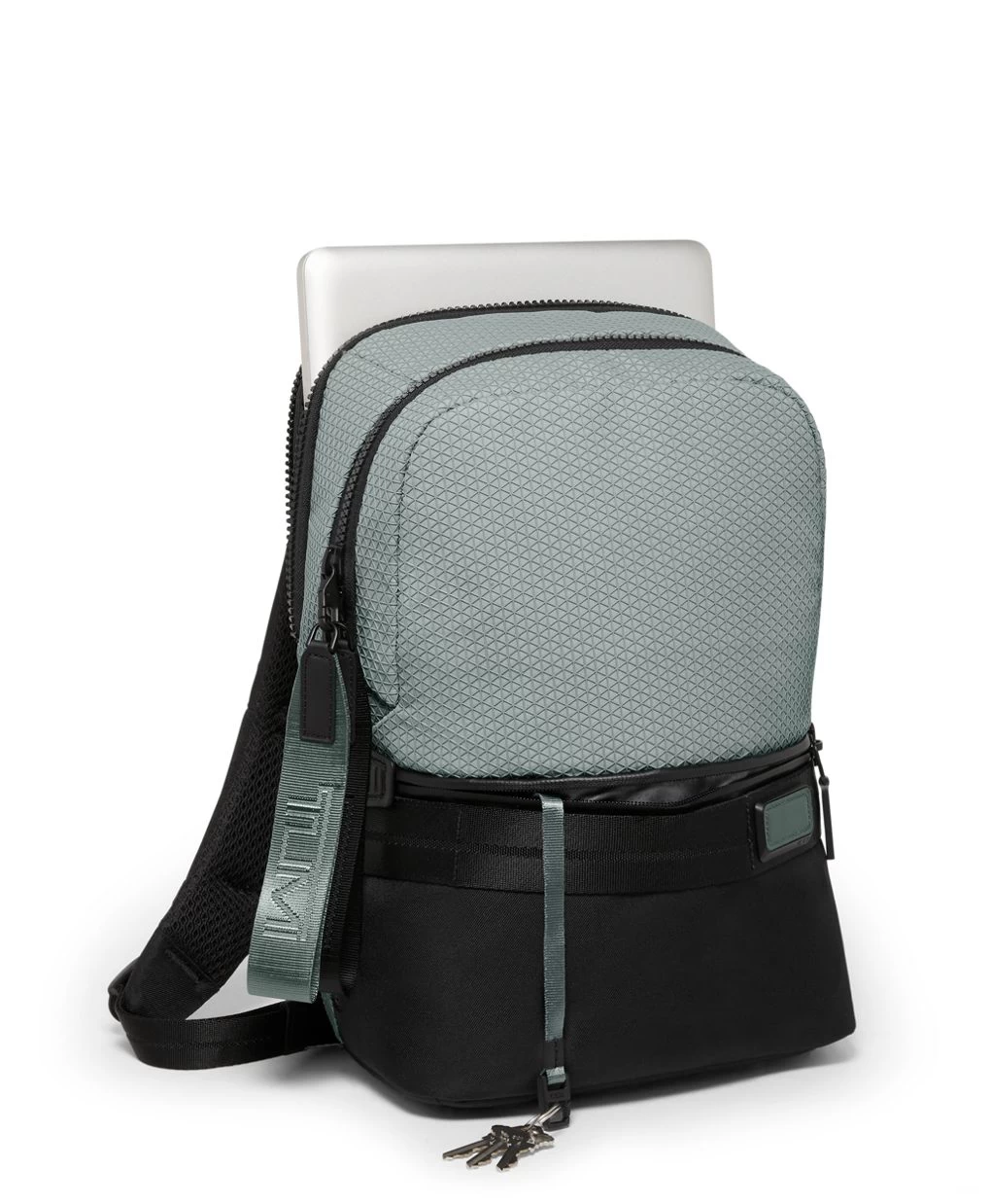 This streamlined style gets a seasonal refresh with a rubberized geometric pattern that gives the surface visual and tactile interest. Well-placed pockets organize essentials, including your laptop.
