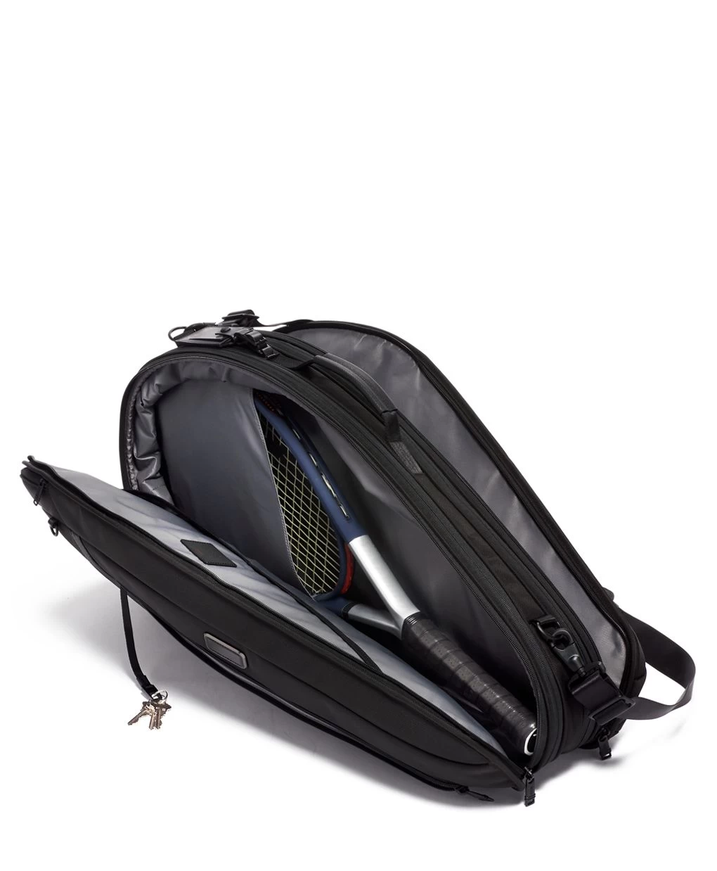 - 2 angled pockets for a tennis racket