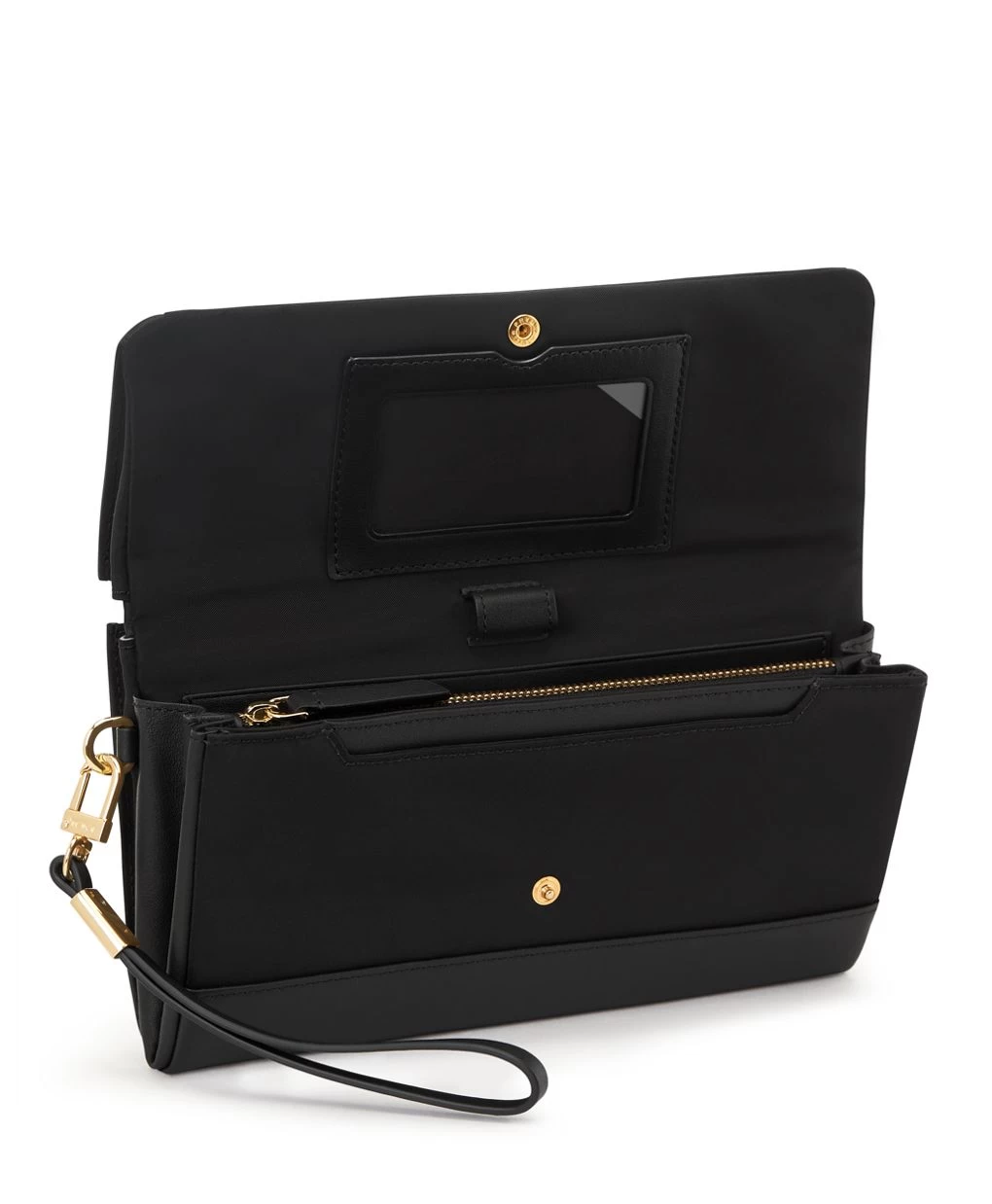 A smart combo of functionality and modern design, this wallet offers enough room to store credit cards and travel documents, plus a wristlet strap for easy carrying.